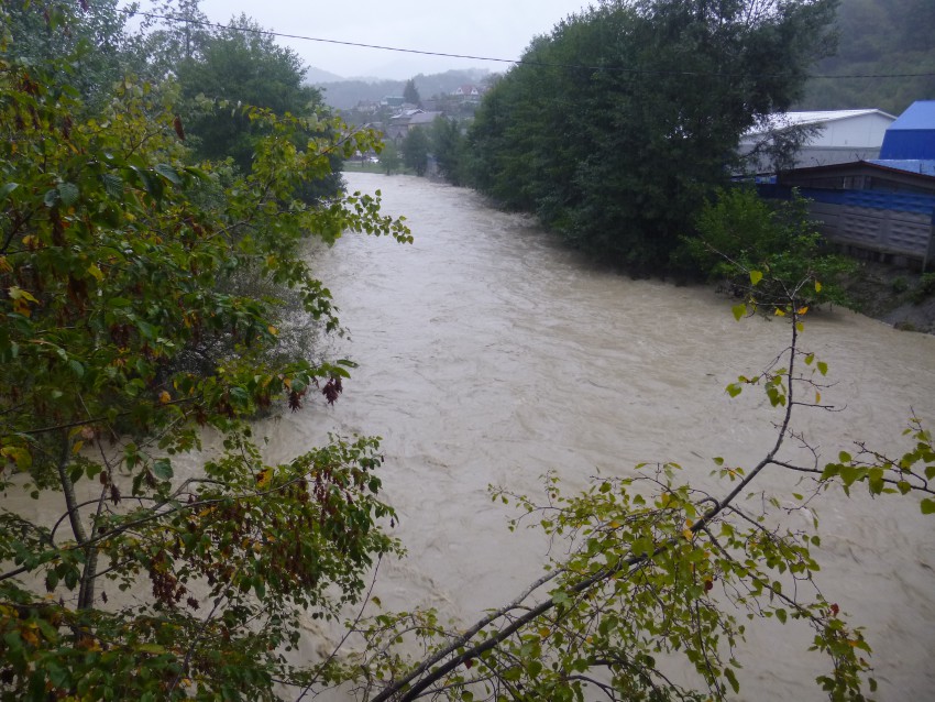 В районе Бетонный мост на Волковке река Западный Дагомыс вышла из берегов. Как там в Дагомыс и в других районах Сочи?