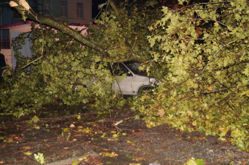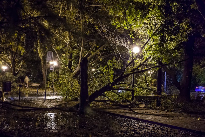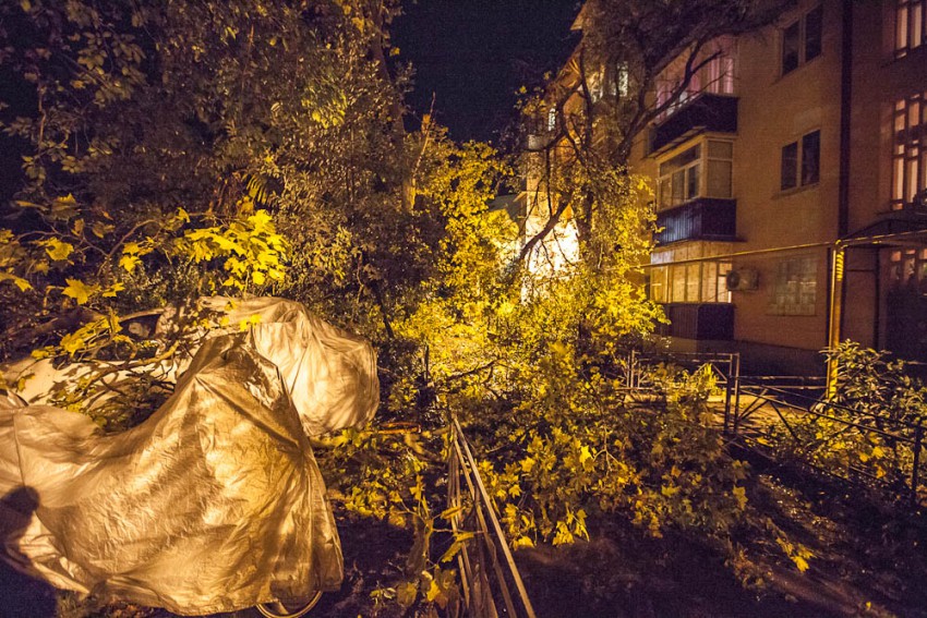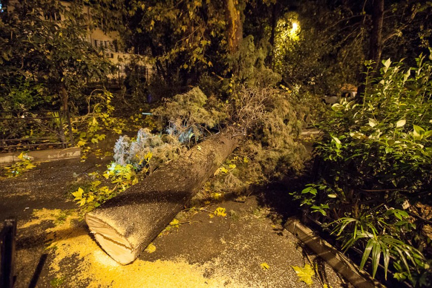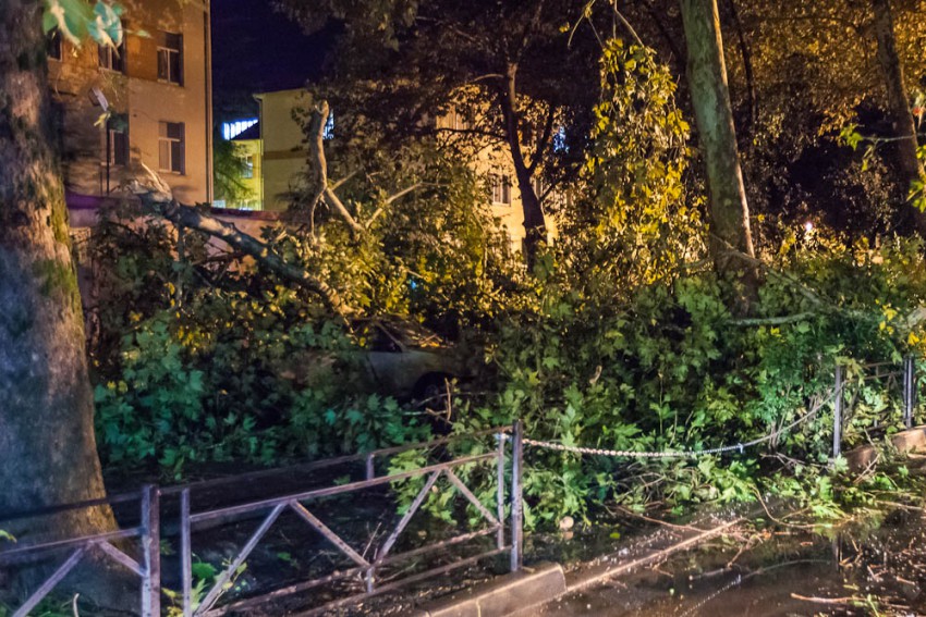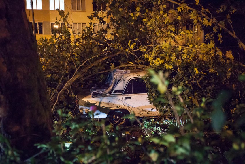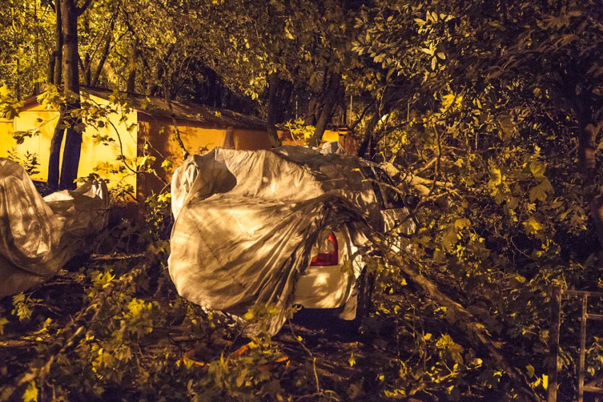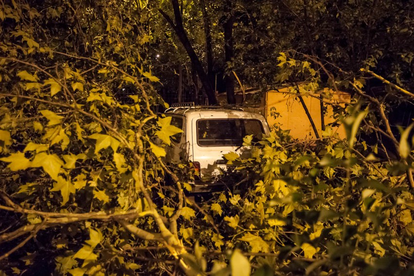А ведь я говорил о кронировании, уже ни раз ветки падали и мяли авто. Вот и результат. Ветки с платанов провисали так что до них можно было достать руками.