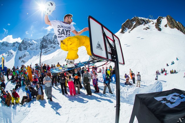 А 25 марта на Quiksilver New Star Camp было отмечено не только первым за лагерь солнечным днем, но и суперкреативным сноубордическо-баскетбольным контестом DC Trase Jam.
