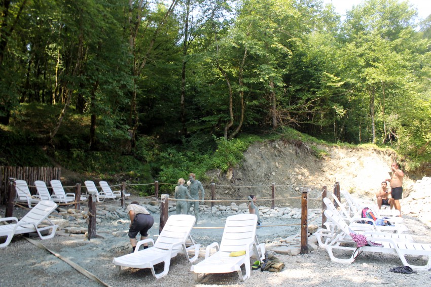 Пока ждали экипажи джиперов из других городов для проведения гонок желающие бесплатно принимали ванны в природном образовании голубой глины.