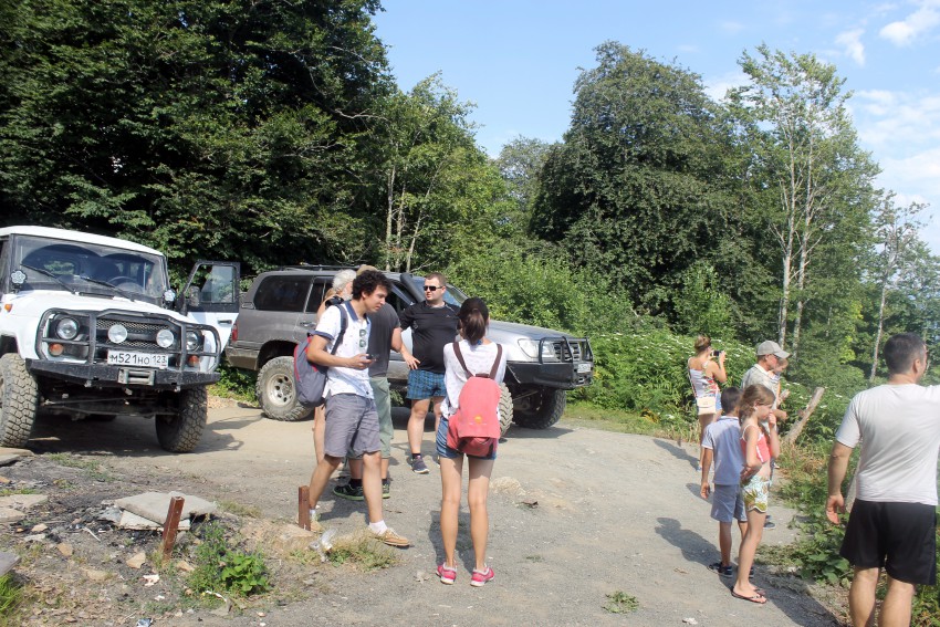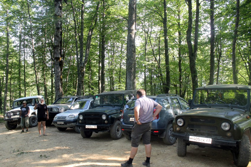 Поставили машины на площадке за два километра от села Монастырь по трассе Адлер-Красная поляна.