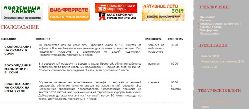 2. Сложилось впечатление, что в Сочи совсем нет скалодромов. В центральном районе Сочи сейчас есть как минимум 4 скалодрома, и при этом один из них уже находится по адресу Сочи, Горького, 37. И он, что самое главное, РАБОТАЕТ. Туда может придти любой желающий и попробовать свои силы. И многие остаются. Занимаются постоянно около 40 человек, участвуют в соревнованиях и занимают первые места. А это о многом говорит.
