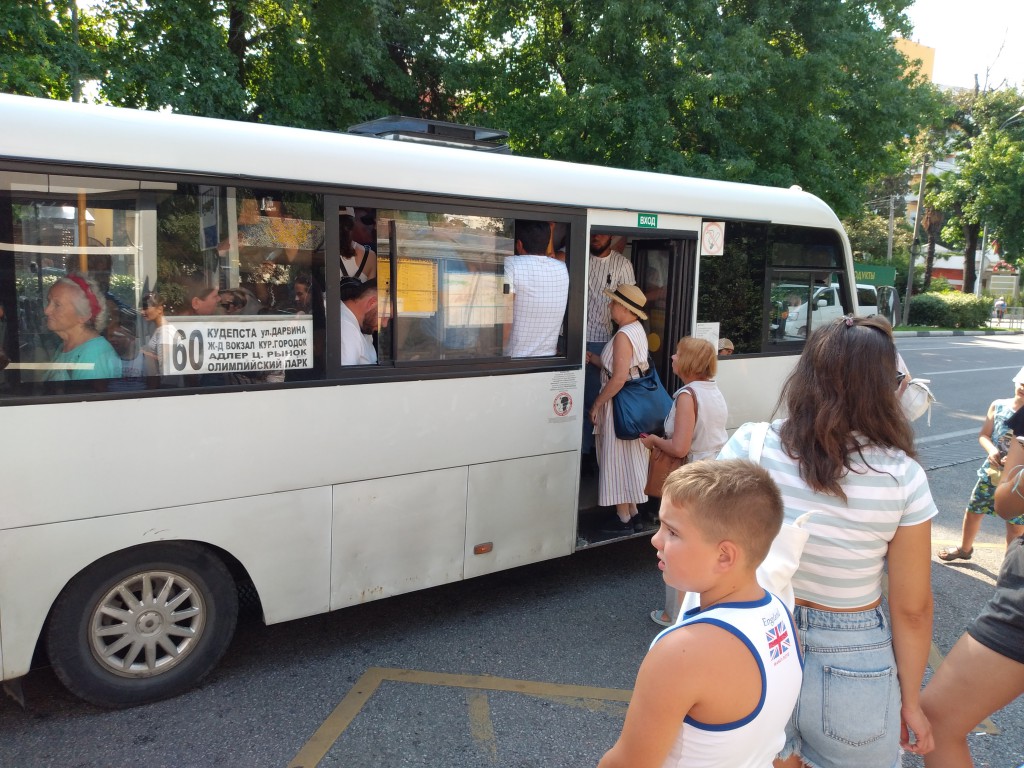 Летом основная масса отдыхающих ездит между Центром Адлера (Рынок, ТЦ, ПКиО, поликлиника) — в Сочи (Дендрарий, Ривьера, Цирк, Зимний театр) и — в Кургородок (Дельфинарий, Океанариум). Большая часть автобусов со стороны Сириуса идёт до ЖД вокзала Адлер, все пустые. Зато оставшиеся в сторону Курятника — 60, 117, 134 и 50 — всегда битком, учитывая, что им в этом году ещё и увеличили интервалы до 15-20 мин. А, ну да, ещё 88, который раз в час. 60, 117 и 134 — это ужас ужасный, без кондиционеров, старые машины, хорошо, если есть большие открывающиеся окна и люки. Хотя и они не спасают, т.к. водители выстаивают на рынке и Комсомольце, пока не набьют салон под завязку, так что на Южном взморье и Взлётной в них уже невозможно втиснуться.