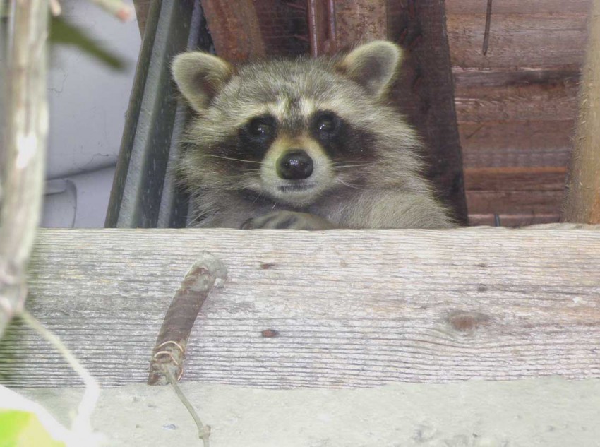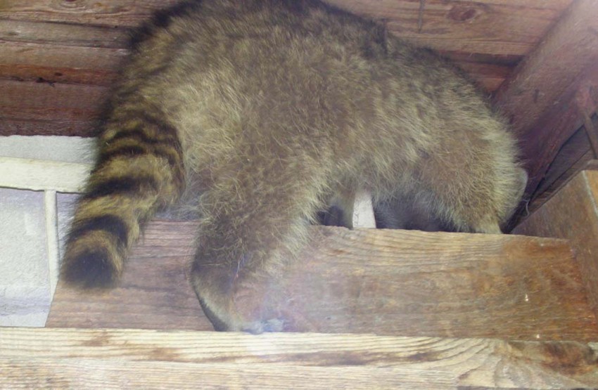 Впервые еноты проявили себя лет 5 назад. Сначала обнаружились следы посещения. а потом енотиха вообще устроила роддом с детсадом на чердаке (3 детёныша), но тогда я не сумел их сфотить (не было возможности подобраться к ним. да и не знал тогда. что это еноты- просто была слышна беготня каких-то крупных зверьков. до них меня постоянно посещали только сони, но они не топали ногами)и мамаша заметив, что её логово обнаружено сразу увела свою «банду»,-на следующий день я разобрал проблемный угол на чердаке, но обнаружил только брошенное логово.