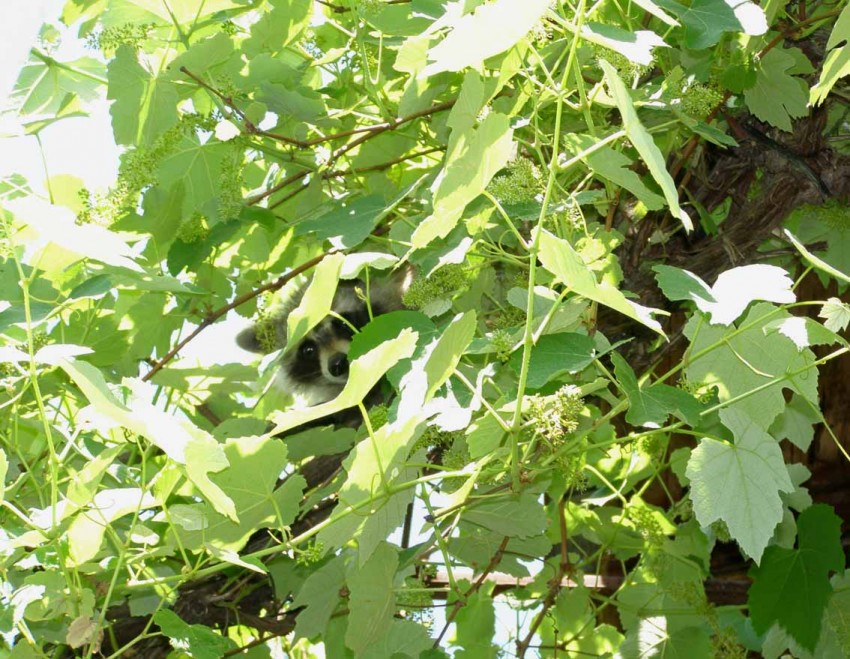 с той поры еноты постоянно наведываются. особенно осенью-обносят виноград и орехи. Сегодняшний гость похоже молодой енот, поэтому и удалась фотосессия.