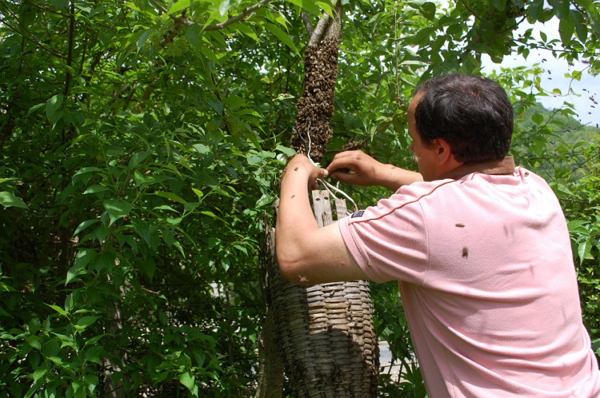 За ней может улететь до половины пчел.Сбежавший рой видно из далека — эдакая борода состоящая из пчел… Обычно, в это время пчелы агрессии не проявляют абсолютно.То есть их можно спокойно брать и сгребать в мешок голыми руками.Хотя, нет правил без исключений, доказательством чего служит уважаемый kaktus.