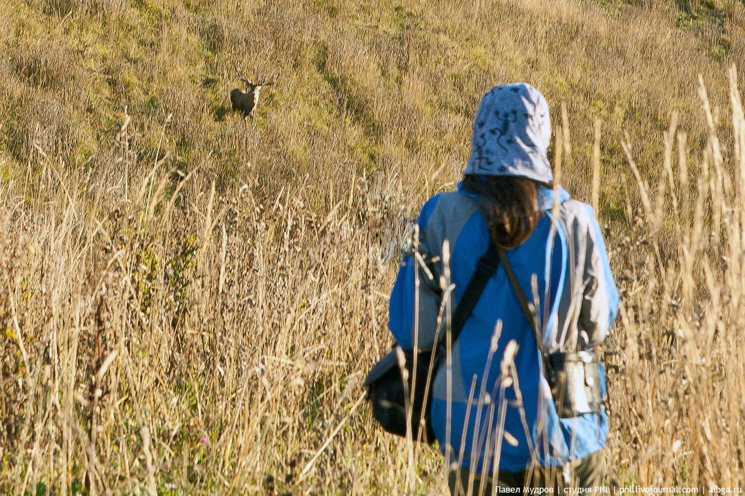 7. Встреча учетчика с животным иногда происходит внезапно. В такие моменты оба останавливаются и некоторое время смотрят друг на друга. Потом животное, к сожалению, убегает. Простите, что не очень резкое фото, для фотографа тоже было внезапно. И тоже сентябрь.