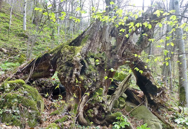 Старый пень любуется весной своими пустыми глазницами.