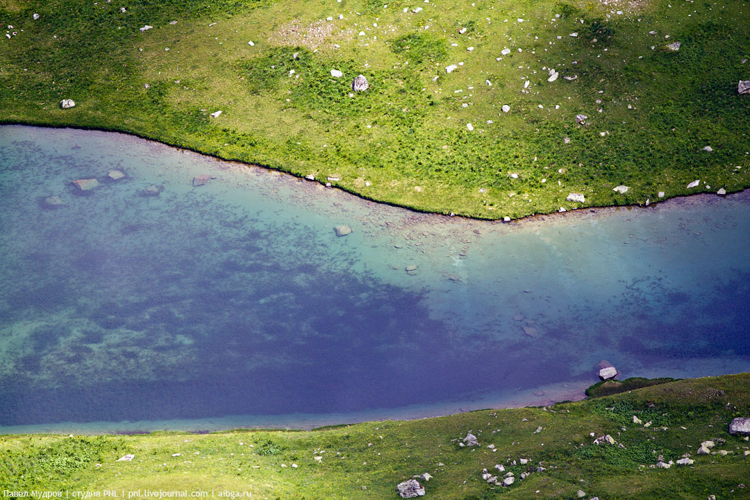 4. Озеро Алоус, вид сверху. Видно все до дна, настолько прозрачная вода. Июль.
