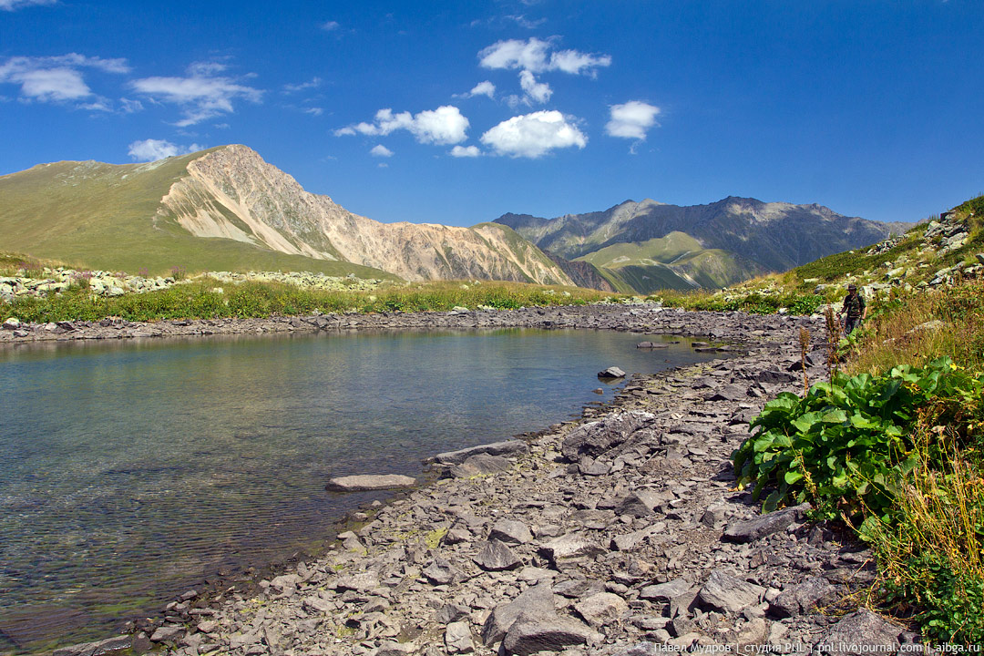 2. Озеро Чугуш на переднем плане и массив Ачишхо на заднем. Июнь.