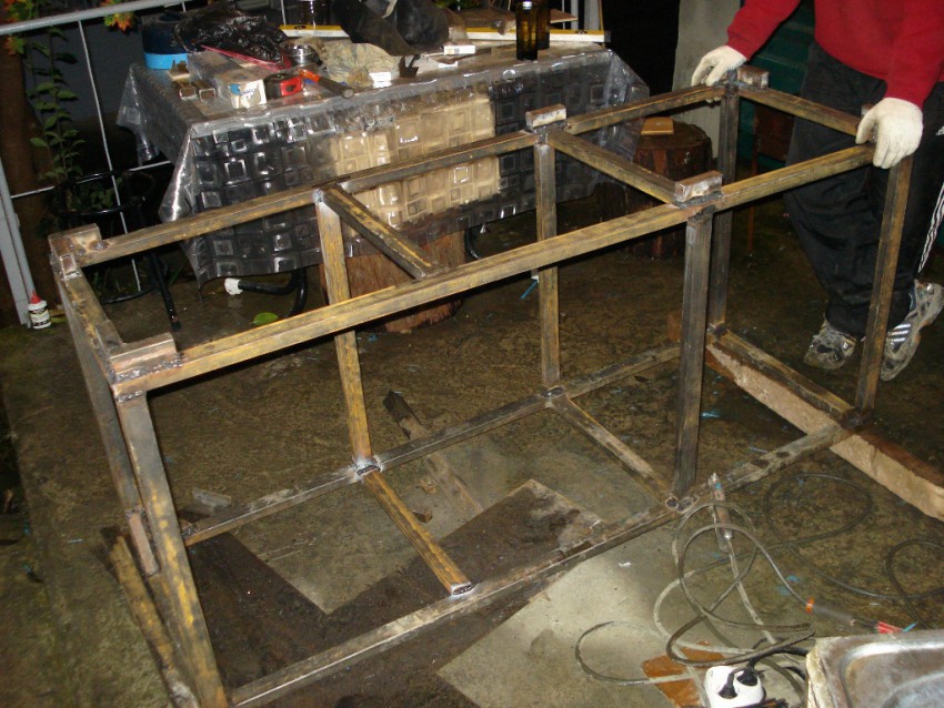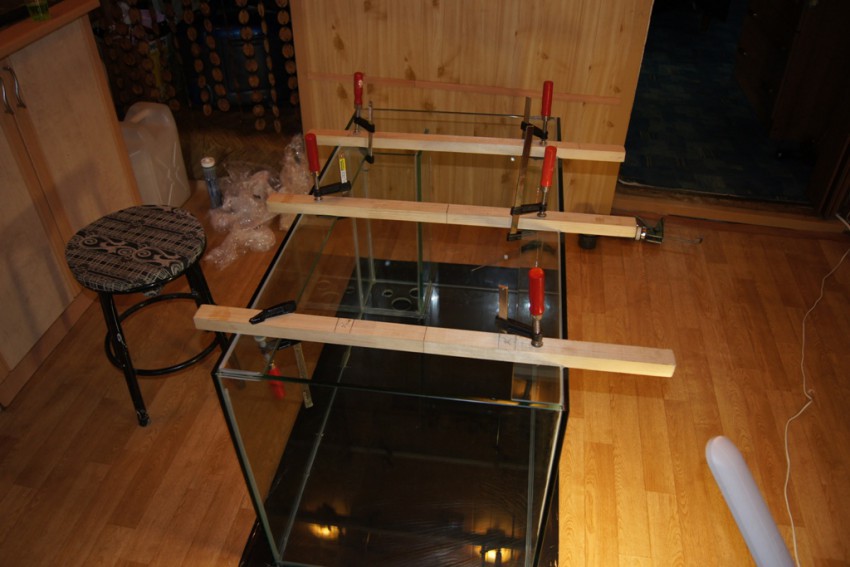 Верхний аквариум 310-320 литров, нижний, в тумбе (самп) около140 литров…