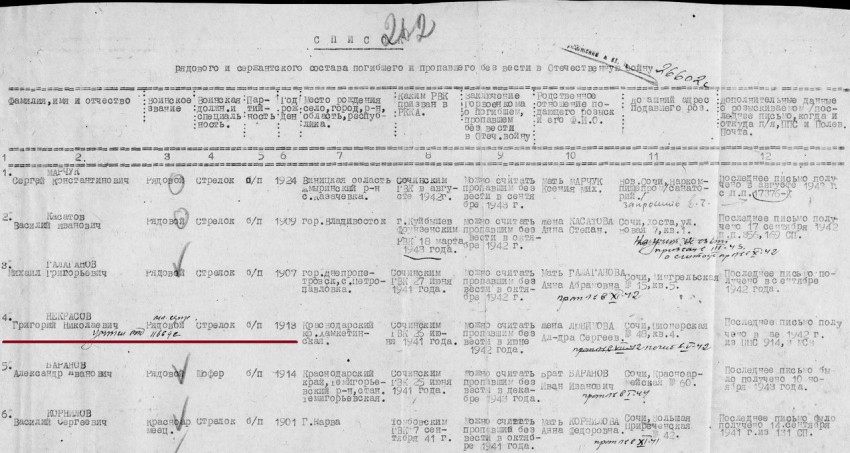 Некрасов Григорий Николаевич. Мл. сержант, 1913г.р. г.Сочи (ищем родных).