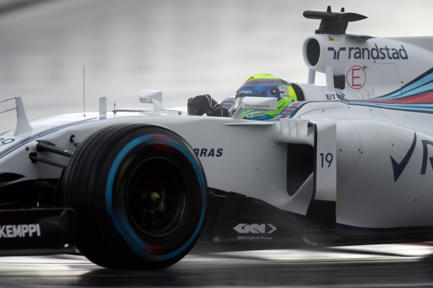 Бразильский пилот Williams показал лучшее время во второй сессии свободных заездов, прошедшей в дождевых условиях.