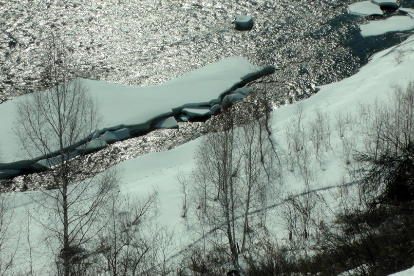 А Катунь во многих местах уже вскрылась… а кое-где так за всю зиму и не стала…