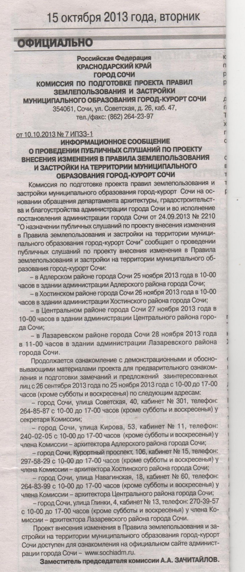 Все предложения по внесению изменений в ПЗЗ в комиссии находятся.