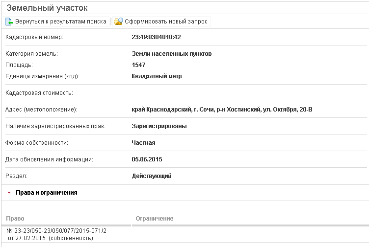 2009 год. 13.10.2009 земельный участок зарегистрирован в собственности за муниципальным образованием г.Сочи.