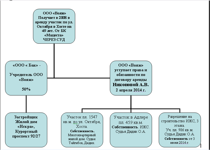 2007 год. Арбитражный суд Краснодарского края в составе судьи Черненко А.В. обязывает ТУ Росимущества по КК заключить с ООО «Вояж» г. Сочи договор аренды земельного участка под санаторно-оздоровительную деятельность сроком на 49 лет.