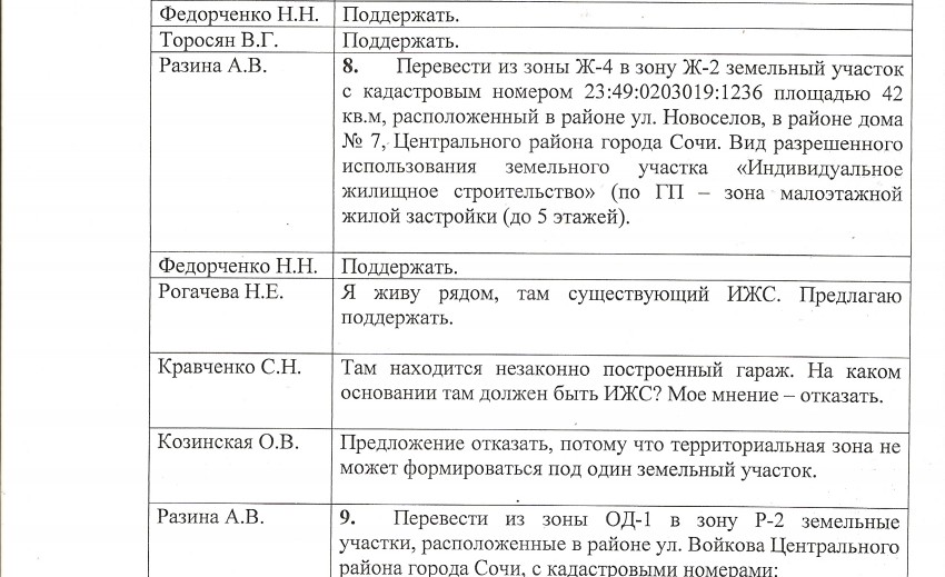 Почему-то наши с Леной Дзагания возражения по вопросу изменения зоны под жилым гаражом Черной Р.Ю. из протокола исчезли…