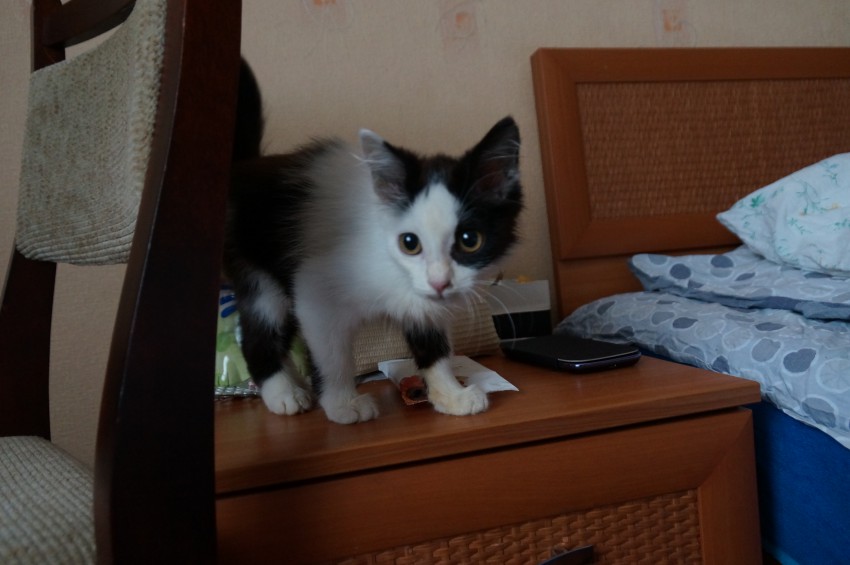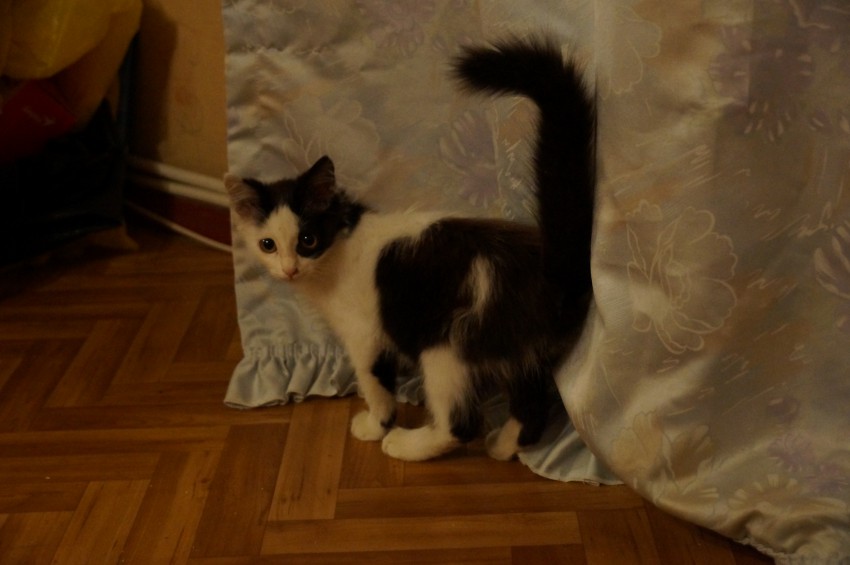 начинал жить в ванной у батареи, кормили с пальчика да пипеткой.