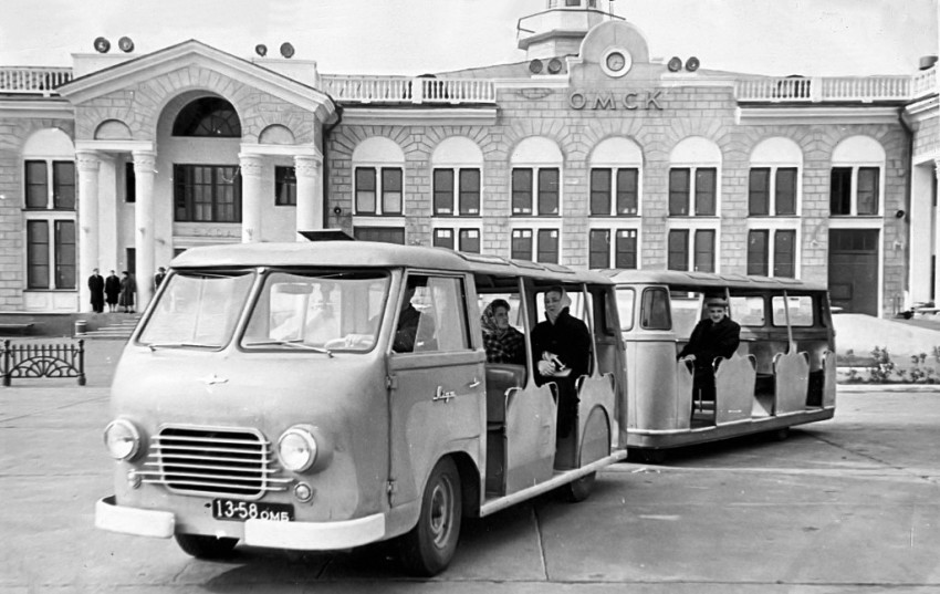 Такие автопоезда у нас в стране работали на ВДНХ и в крупных аэропортах. Они развозили посетителей выставок и пассажиров самолётов. Вместимость автопоезда -64 человека, максимальная скорость-15км/ч