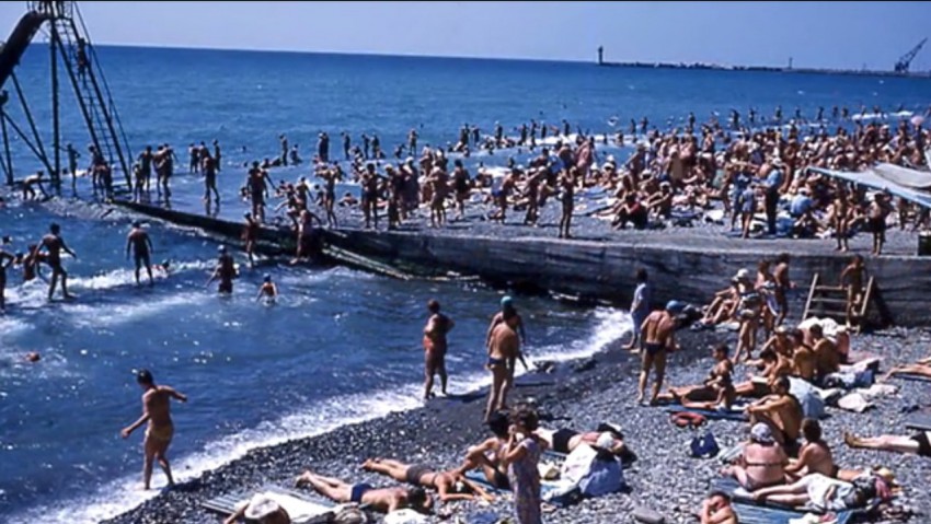 Россияне поклонники солнца. Вероятно, из-за холодного климата и долгих зим. Купальщики приносили доски на пляж и находили способы следовать за солнцем, перемещая их, чтобы держать лучший угол для максимального загара. Я бродил среди огромных толп едва одетых людей всех возрастов, семей и все поклоняются солнцу. Когда каникулы закончивались, люди возвращались на свой холодный север с коричневым загаром и теплые воспоминания о теплом солнце.