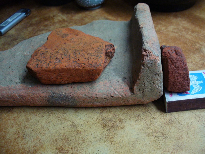 Она была идентична черепице (нижняя на фотографии) храма на Малом Ахуне. Но хотелось бы более очевидных находок. И мне не пришлось их долго ждать. Восьмого января, после Рождества я вновь посетил это место – снег растаял, вода промыла землю.