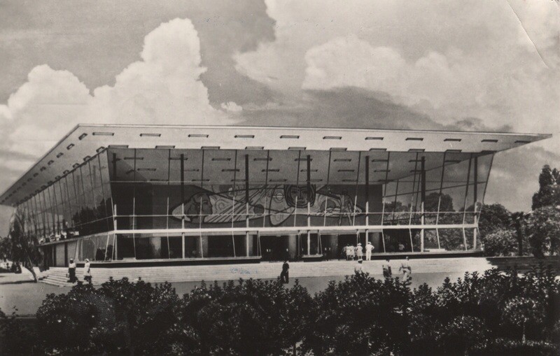 Тот вид кинотеатра, что на открытке уже второй. Первый был похож на ангар с круглой крышей. Он был перестроен, как я думаю, по настоянию А.И. Микояна.