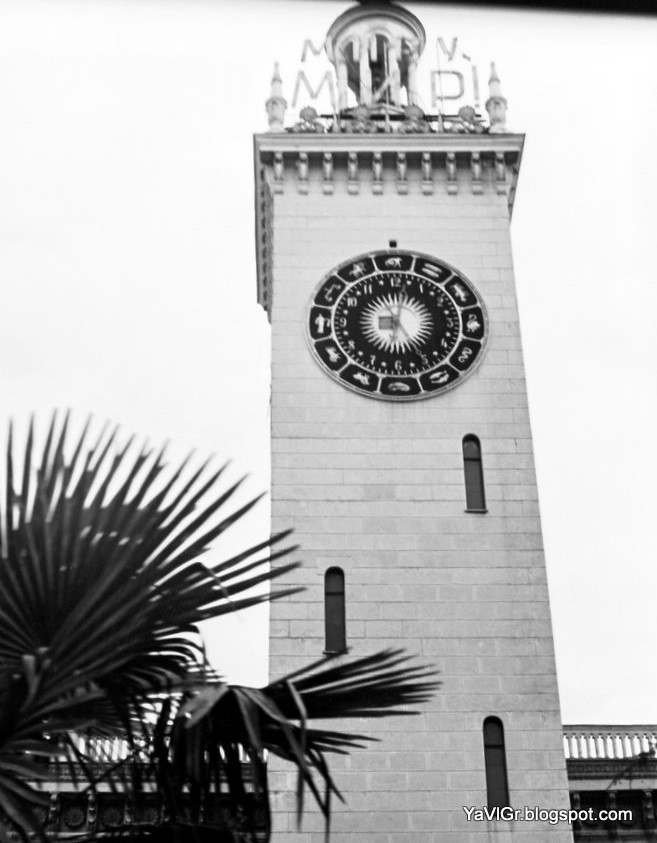 Часовая башня ж.д. вокзала с подзабытым ныне лозунгом «Миру-мир»