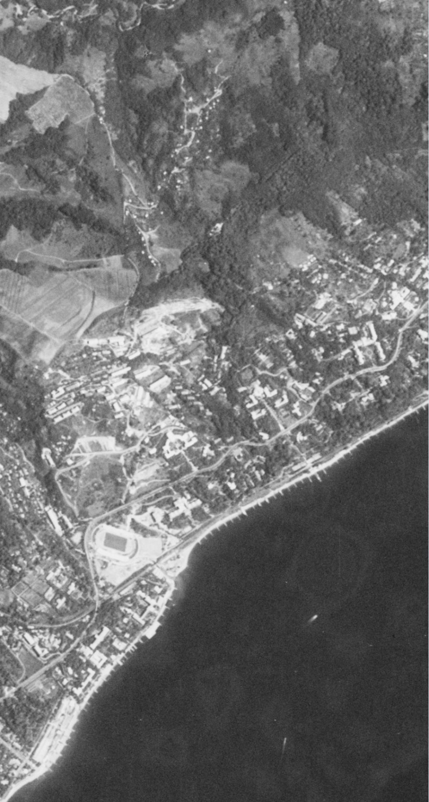 Американцы рассекретили некоторые свои спутниковые фотографии территории СССР 60-70гг и посему хочу поделиться с Вами космическими снимками, а вернее их фрагментами (поскольку оригиналы фото охватывают большую площадь и имеют не маленький вес) показывающими прибрежную линию города, и Красную поляну.