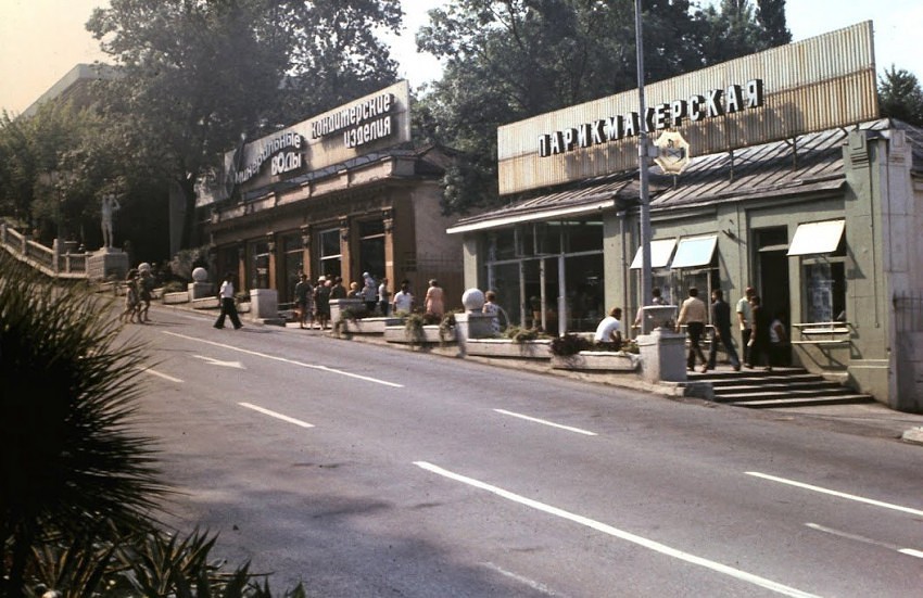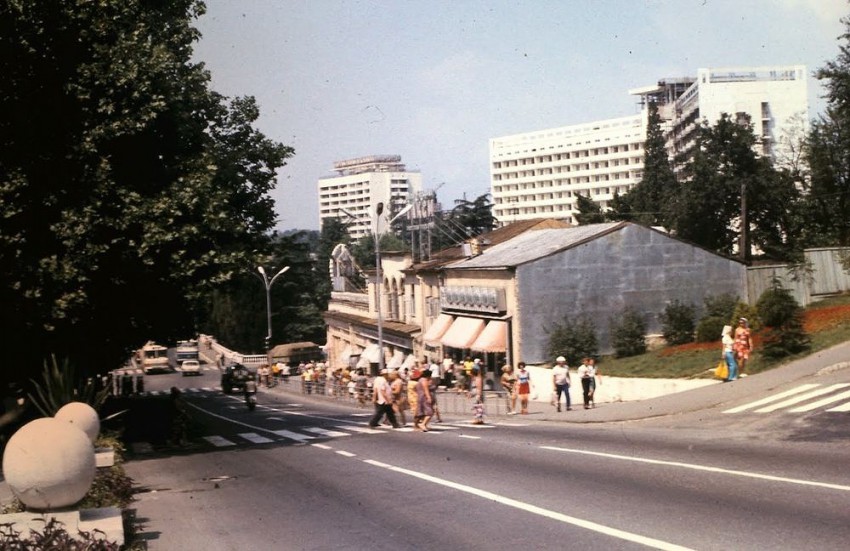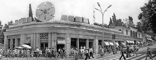 2) если смотреть в сторону «Ривьеры», то по левой (для смотрящего) стороне тогда не было никаких зданий кроме магазина «Кубанские вина», стоявшего на месте нынешнего бутика «Benneton». Это было здание в виде полу-ротонды, и все вы его прекрасно помните. Где оно?