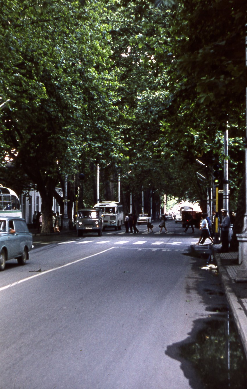 Последнее фото — Платановая аллея, вид в сторону Ривьеры. Пешеходные переходы — на пересечении с улицей Советской. Слева видна стена здания — там была столовая.