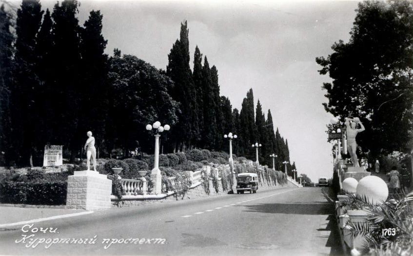 Да, Курортный проспект в районе Зелёной рощи, вид в сторону Адлера. За каменным парапетом по правой стороне сейчас находится здание за высоким забором.