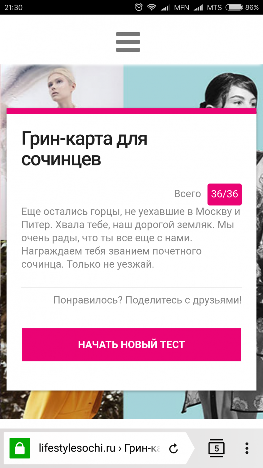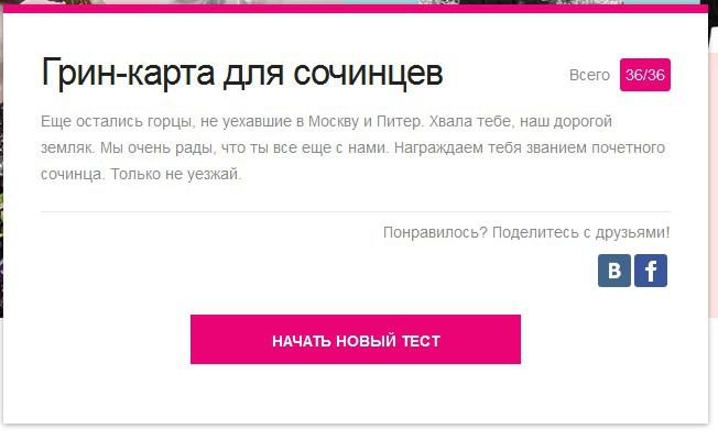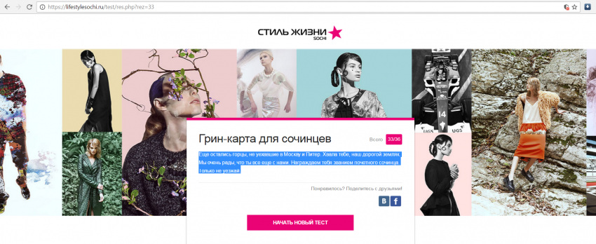 Покажите свои результаты в комментариях. Тест можно пройти по ссылке lifestylesochi.ru/test/.