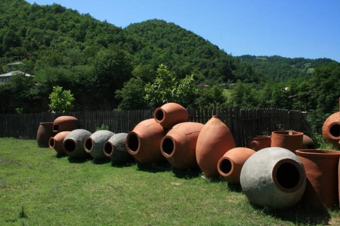 Особенность местного виноделия заключалась в том, что виноградное сусло выдерживалось не в кувшинах, а в деревянных чанах. По окончании процесса брожения его без выжимки сливали в кувшины и в них выдерживали до готовности. Кувшины закапывали в землю. О древности виноделия говорит и тот факт, что глиняные кувшины с вином часто находили при вскапывании земли, о чем сообщает, в частности, Дж. Белл (1837-1839).