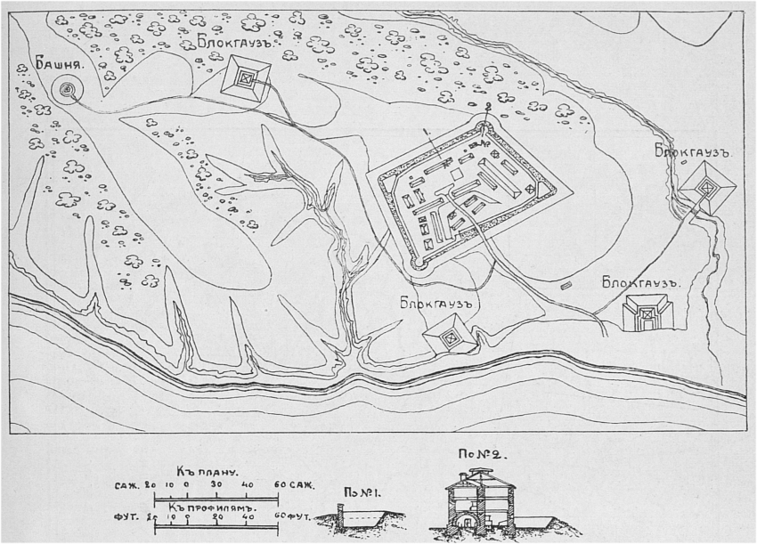 Вид Вельяминовского укрепления с литографии, на мой взгляд, не идеально, но совпадает с планом