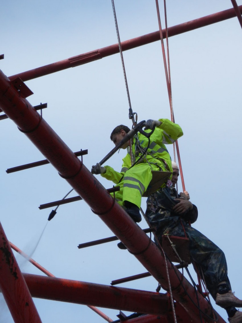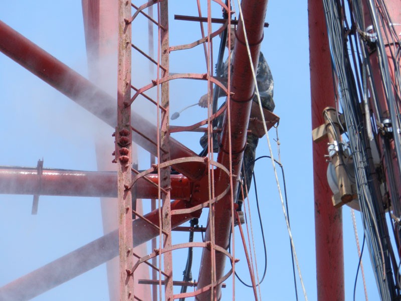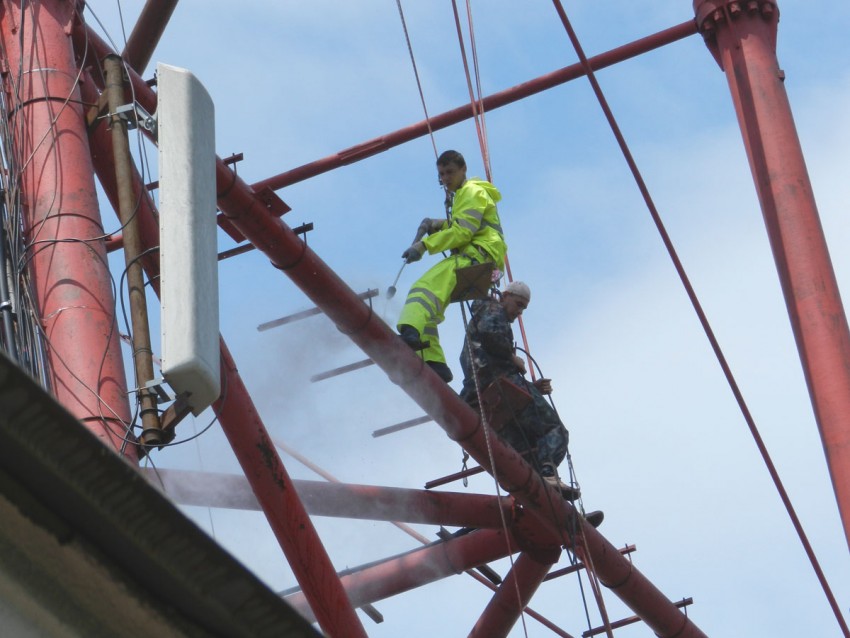 производится очистка конструкций с помощью керхеров от пыли и облупившейся старой краски. Подготовка к плановой покраске.