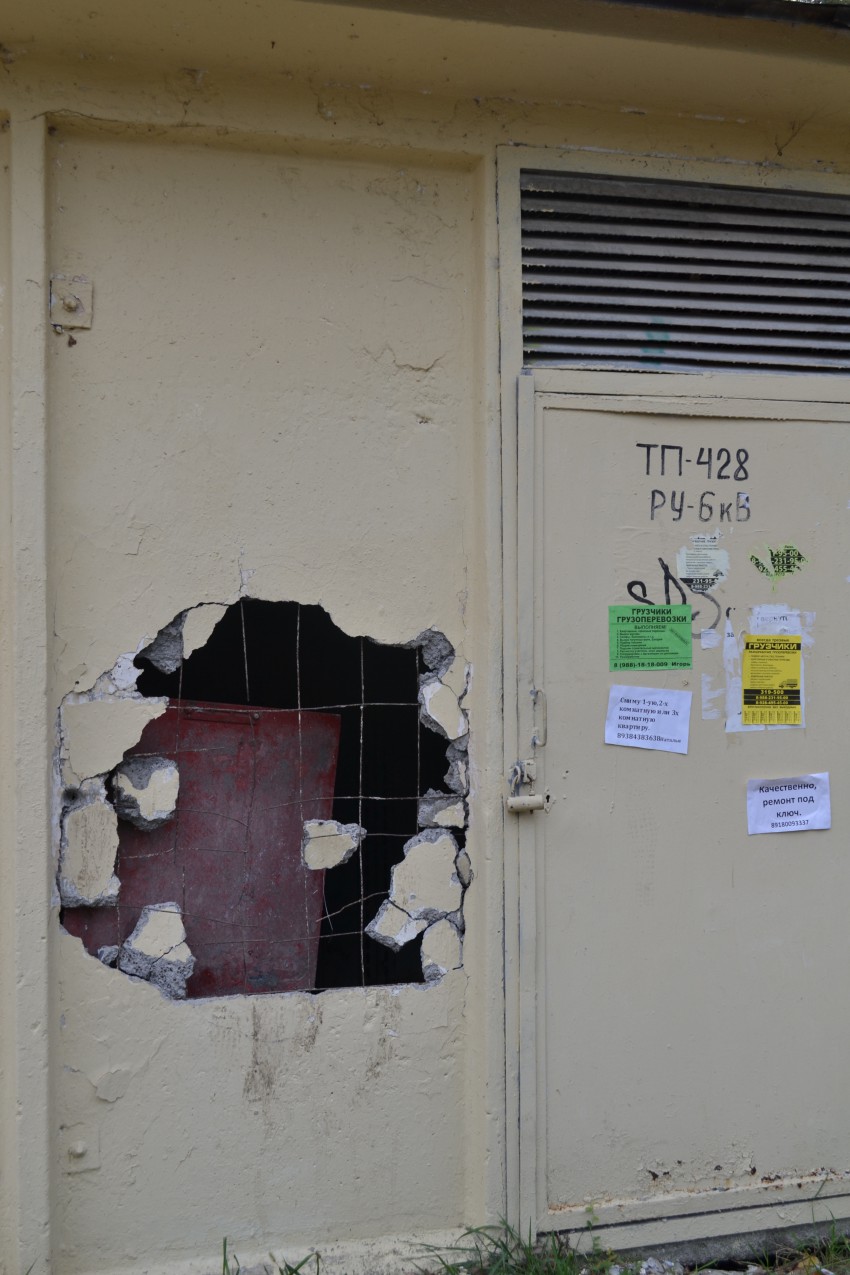 Кроме нецензурной брани написать что-то, глядя на ЭТО, очень сложно. Вопрос к Кубаньэнерго: это вообще что такое? Я не говорю о том, что в эту черную дыру могут легко залезть кошки и оставить без электричества, зависящие от этой ТП, дома. НО! Туда могут влезть без особых проблем и дети и пьяные люди и бомжи! Вы не видели этого кошмара или не хотите видеть?! Прошу оперативно отреагировать все структуры города на данное безобразие, так как оно может привести к очень плачевным последствиям. Это «чудо» находится прямо за мемориалом на улице Тоннельной.