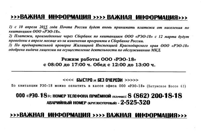 RSS свернуть / развернутьСам я не видел, но соседи говорят, что по какому-то сочинском тв каналу даже городничий Пахомов сказал, что из-за большого количества жалоб РЭО-18 процесс лицензирования не пройдёт.