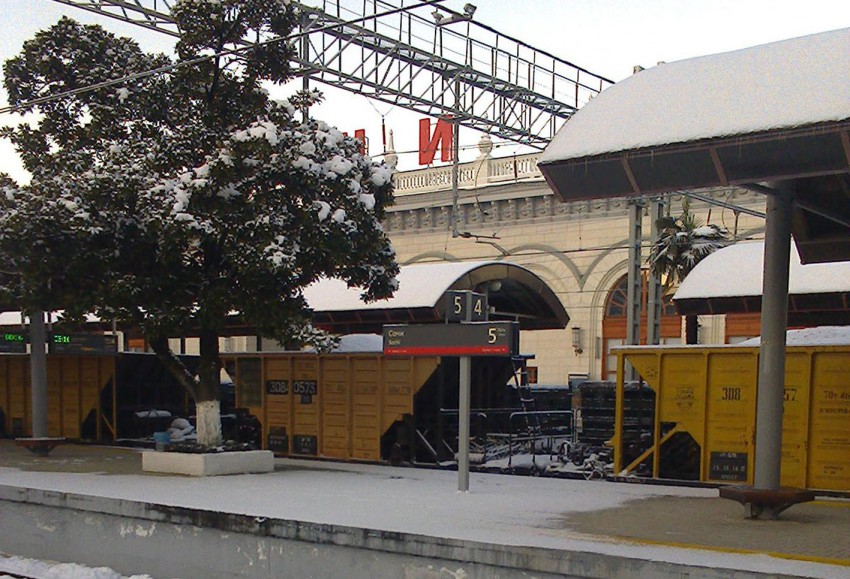 А во что превратились железнодорожные ворота Олимпийской столицы — сочинский вокзал? На площади перед досмотровым павильоном сияет гладь катка. Снег с перронов убран только наполовину.