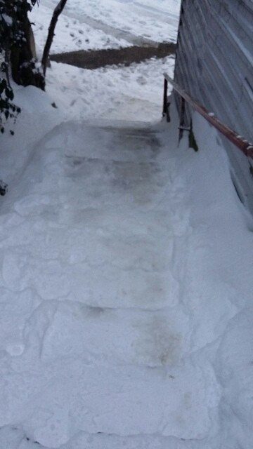 На 17:30 от Зимнего театра к Жемчужинк не убрано, очень скользко, лёд блестит!!!