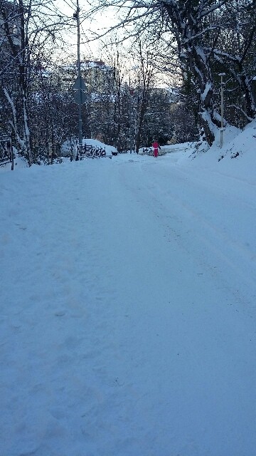 Первая техника (один грейдер) и первые дворники с лопатами и песком появились на улицах Бытхи в 8-30 утра. Как раз, когда уже большинство работающих жителей с огромным трудом пешком спустились и кое-как добрались на работу.