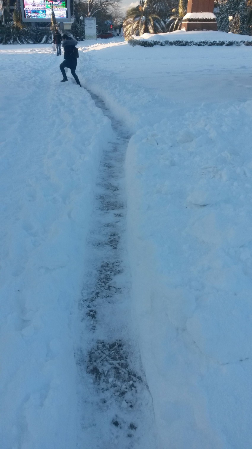 Как всем известно, в Сочи весь вчерашний день и всю ночь шел снег, временами сильный. Но, видимо, ни мэр, ни все его многочисленные замы, департаменты по жилищно-коммунальному хозяйству – ничего не замечали. Имея все технические возможности, финансовые средства в своих руках, а также обязанности по уборке и благоустройству городских улиц (за это не маленькую зарплату получают), полностью саботировали уборку снега.