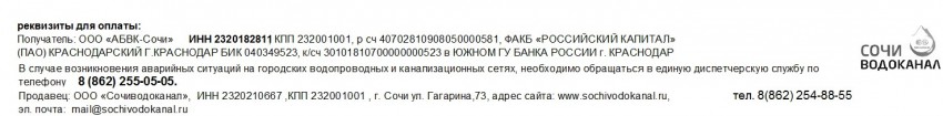 RSS свернуть / развернутьwater, подскажите, в полученной платежке от ООО «Сочиводоканал» получатель указан ООО «АБВК-Сочи. Это корректная информация? Связана, видимо с блокировкой ваших основных счетов?