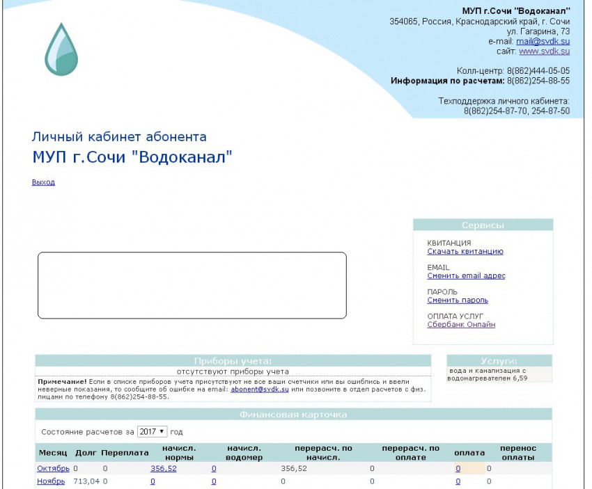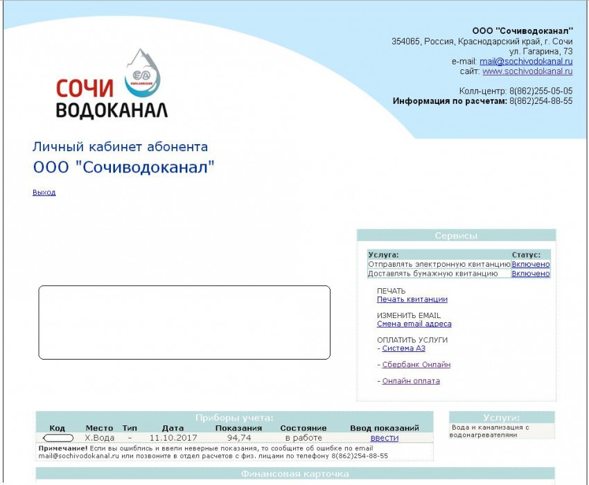 Отправлял сканы оплаченных квитанций от ООО «Сочиводоканал» и реальные показания счетчиков на abonent@svdk.su, но в личном кабинете изменений нет.