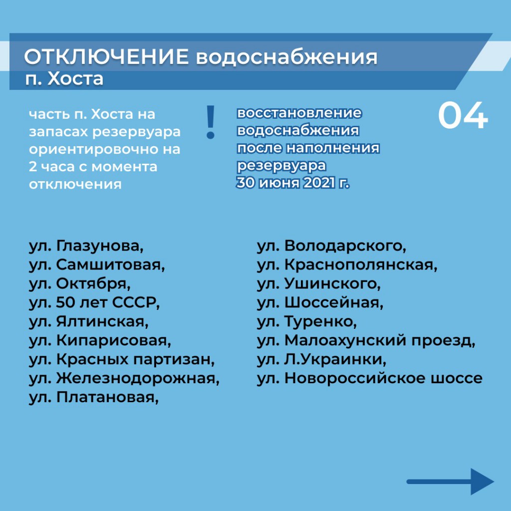 ВАЖНО!!! В Сочи 29 июня планируется отключение водоснабжения в Хостинском и Адлерском районе!