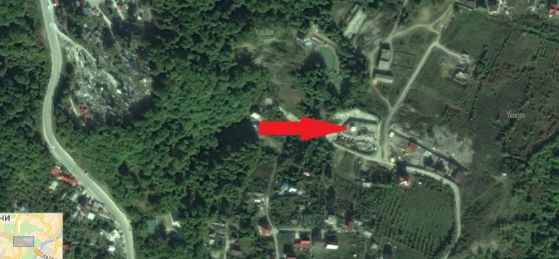 Ниже Высокогорной. Слева р. Сочи. Сооружение по центру — вентиляция тоннеля под Барановкой. Да?