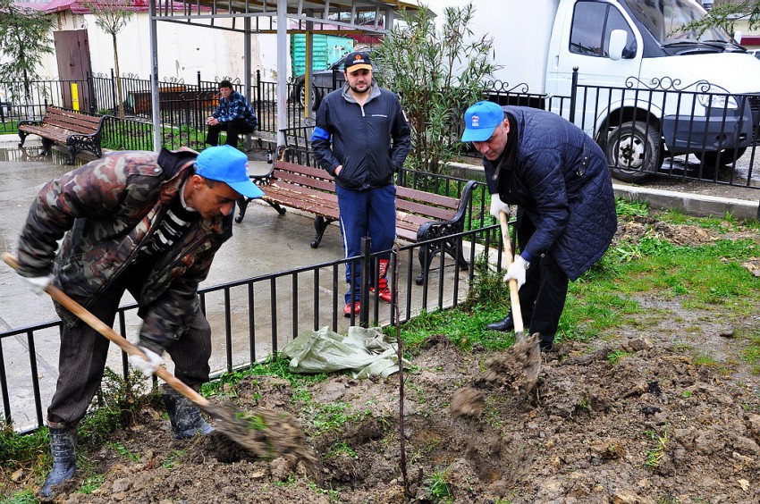 Сегодня в микрорайоне <<КСМ>> состоялась экологическая акция «Сделай свой район лучше». Несмотря на непогоду, жители по приглашению ТОС «КСМ», пришли за саженцами различных растений, чтобы высадить их на своих придомовых территориях. Акция стала возможной благодаря общественности района и активной работе ТОС. Растения бескорыстно предложил, председатель придомового комитета улицы Краснодонская, Владимир Иванович Завгородний, всю жизнь увлекающийся садоводством. Идея озеленения микрорайона была горячо поддержана председателем ТОС «КСМ» Гюльбангян Сарибек Михайловичем и общественным советом микрорайона. Более 700 саженцев: Ивы, Белолистка, Сирени, Лаврушки, Вишни, Барбариса, Мушмулы, и Сливы нашли свое место под солнцем во дворах жителей КСМ. Акция получила отклик и в других районах города, представители которых, решили не отставать от соседей и тоже приехали за зелеными насаждениями. Не остались в стороне и сочинские волонтеры, помогавшие с высадкой растений. Кроме придомовых территорий, саженцы были высажены в СОШ №20 и детском саду №35, где участие в акции приняли взрослые и дети. Руководство ТОС «КСМ» и активная общественность обещают, что такие акции станут доброй традицией и будут продолжены.