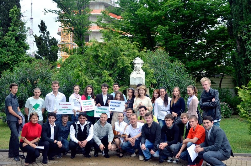 Молодежь города вместе с библиотекарями, заведующими библиотек, или как мы выяснили позже «жрецами» литературы)), 26 мая в 16:00 от библиотеки им.Пушкина до памятника Александру Сергеевичу(бюсту) устроили массовое шествие с информированием прохожих о приближающейся знаменательной дате, тем самым гости курорта проследовали за нами, было весело, позывной клич на который все уже с первых секунд начинали улыбаться «ребят, Пушкин!!»