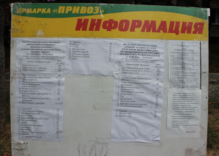 Кто-то утверждал, что указание дал чуть ли не глава города лично, кто-то настаивал на происках чиновников разных рангов. Но вот сегодня лично видел резолюции планерного заседания от 24.09.2012г. В ней в качестве адресата задания стоит О.В.Ясюк. Суть же задания — (цитирую) Принять меры по закрытию продовольственной ярмарки на улице Апшеронская по причине несоблюдения должного санитарного порядка. Исполнителем назначен А.Б.Дворницкий, ну а срок — до 01.10.2012г. Признаюсь честно, не в курсе санитарного состояния ярмарки и стоит ли ее закрывать.