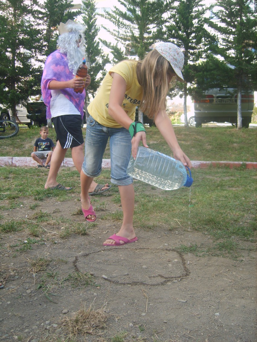 23 июля на Мацестинской 17 дружно проводили морского царя Нептуна обратно в море. Праздник прошёл на дворовой летней площадке. Шутили, смеялись, рисовали водой рисунки на траве, обливались… В конце праздника лучшие художники, танцоры получили призы. А самые отличившиеся, поехали на море, чтобы на прощание помахать рукой Нептуну.